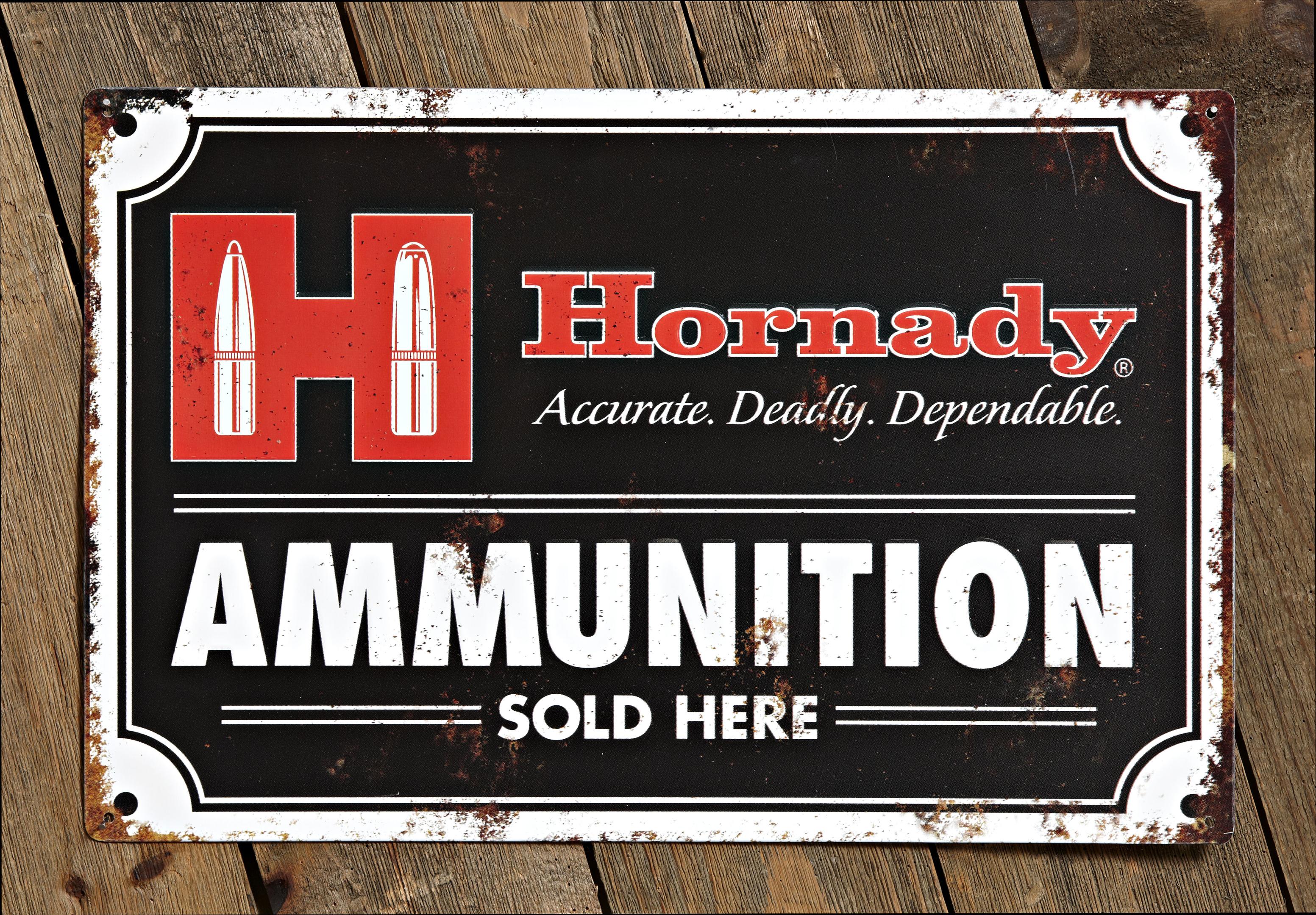 Hornady Blechschild Vintage „Ammunition Sold Here