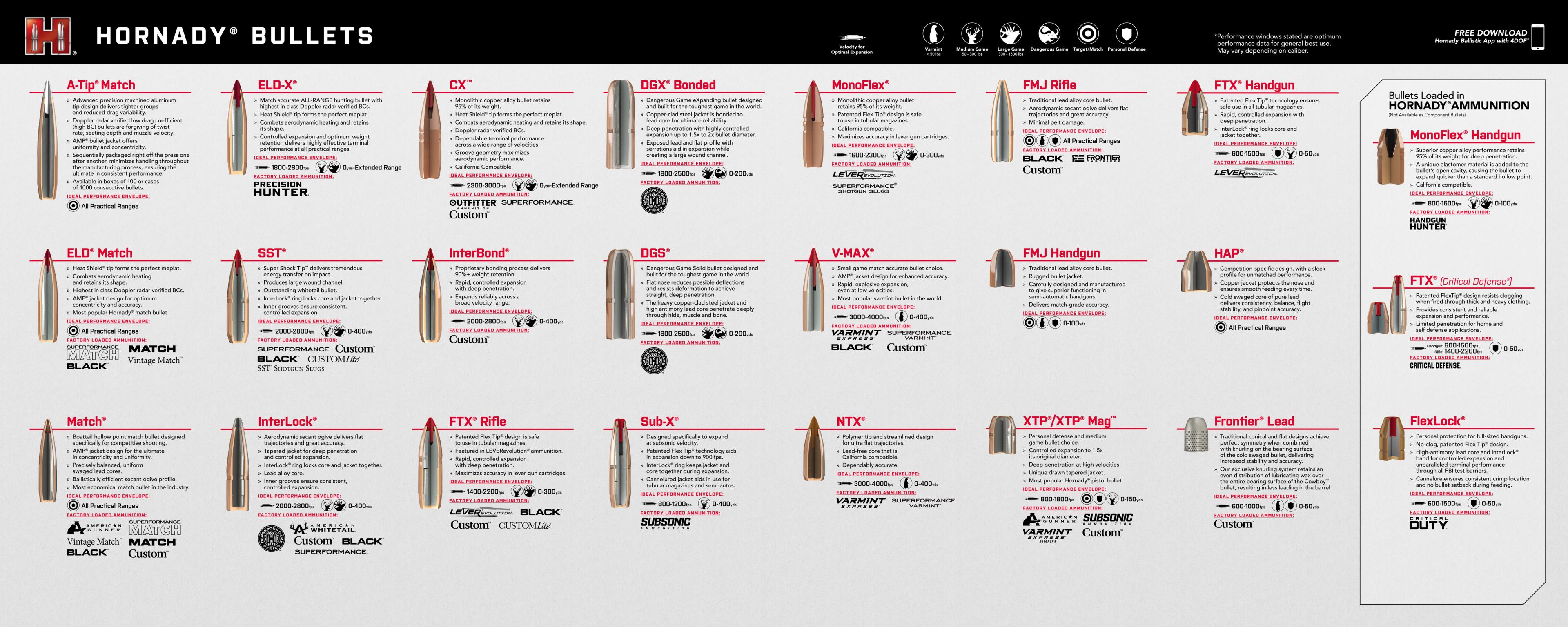 - Gedruckte Übersicht zur Hornady-Geschosslinie