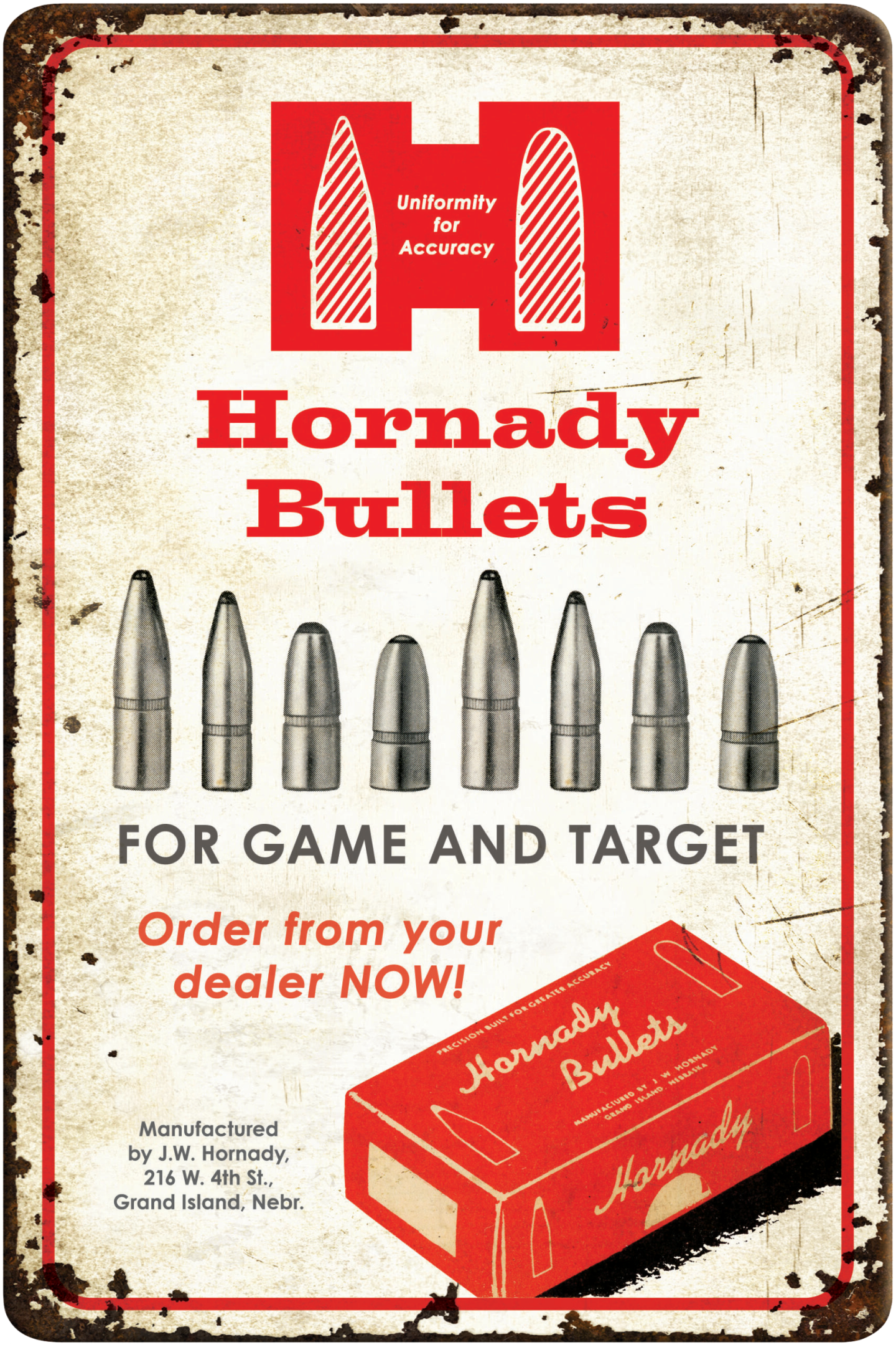 Hornady Bullets Rustic Blechschild Aluminium 12" x 18"