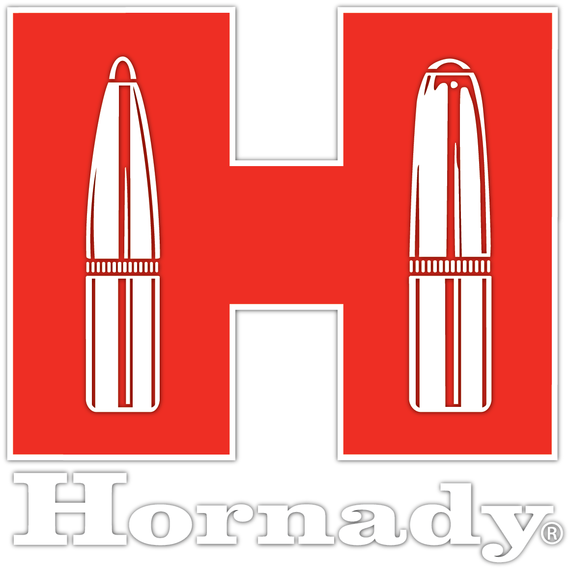 Original Hornady „Red H“ Aufkleber in Rot/Weiß. Größe 3.5" × 3.5" (≈ 8,9 × 8,9 cm). Art.-Nr. 98004.