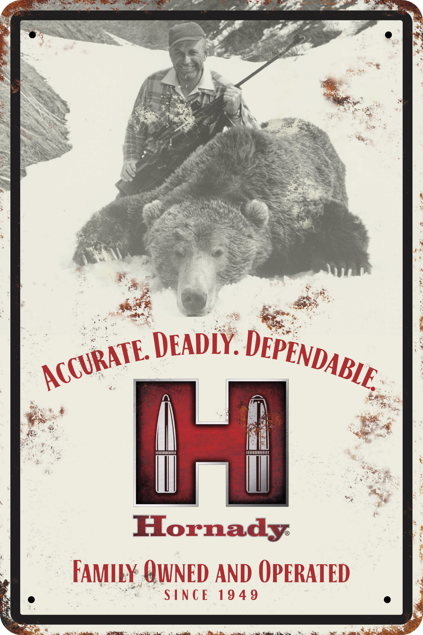 Hornady Vintage-Blechschild "Bärenjäger" – 30,5×46 cm