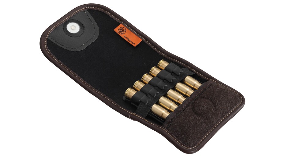 Auf der Rückseite sorgt eine breite Lederschlaufe für einen sicheren Halt am Gürtel. Im Inneren gewährleisten eingenähte elastische Schlaufen die sichere Aufnahme der RWS Büchsenpatronen-Inlays mit bis zu 5 Patronen. Dadurch eignet sich das Etui ideal für Jäger, die Patronen ordentlich, griffbereit und geschützt am Mann tragen möchten.