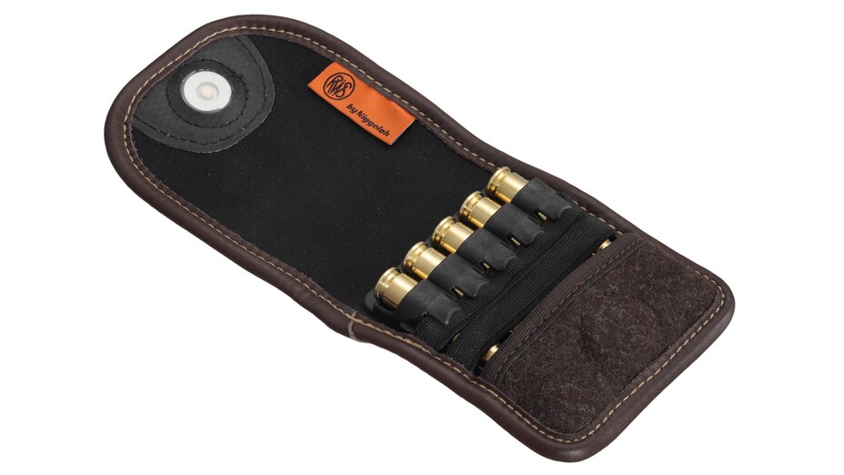 Auf der Rückseite sorgt eine breite Lederschlaufe für einen sicheren Halt am Gürtel. Im Inneren gewährleisten eingenähte elastische Schlaufen die sichere Aufnahme der RWS Büchsenpatronen-Inlays mit bis zu 5 Patronen. Dadurch eignet sich das Etui ideal für Jäger, die Patronen ordentlich, griffbereit und geschützt am Mann tragen möchten.