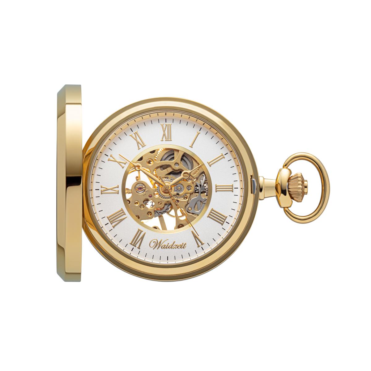 Eine individuelle Gravur auf dem Sprungdeckel macht diese Waidzeit Uhr zu einem unvergesslichen Unikat.