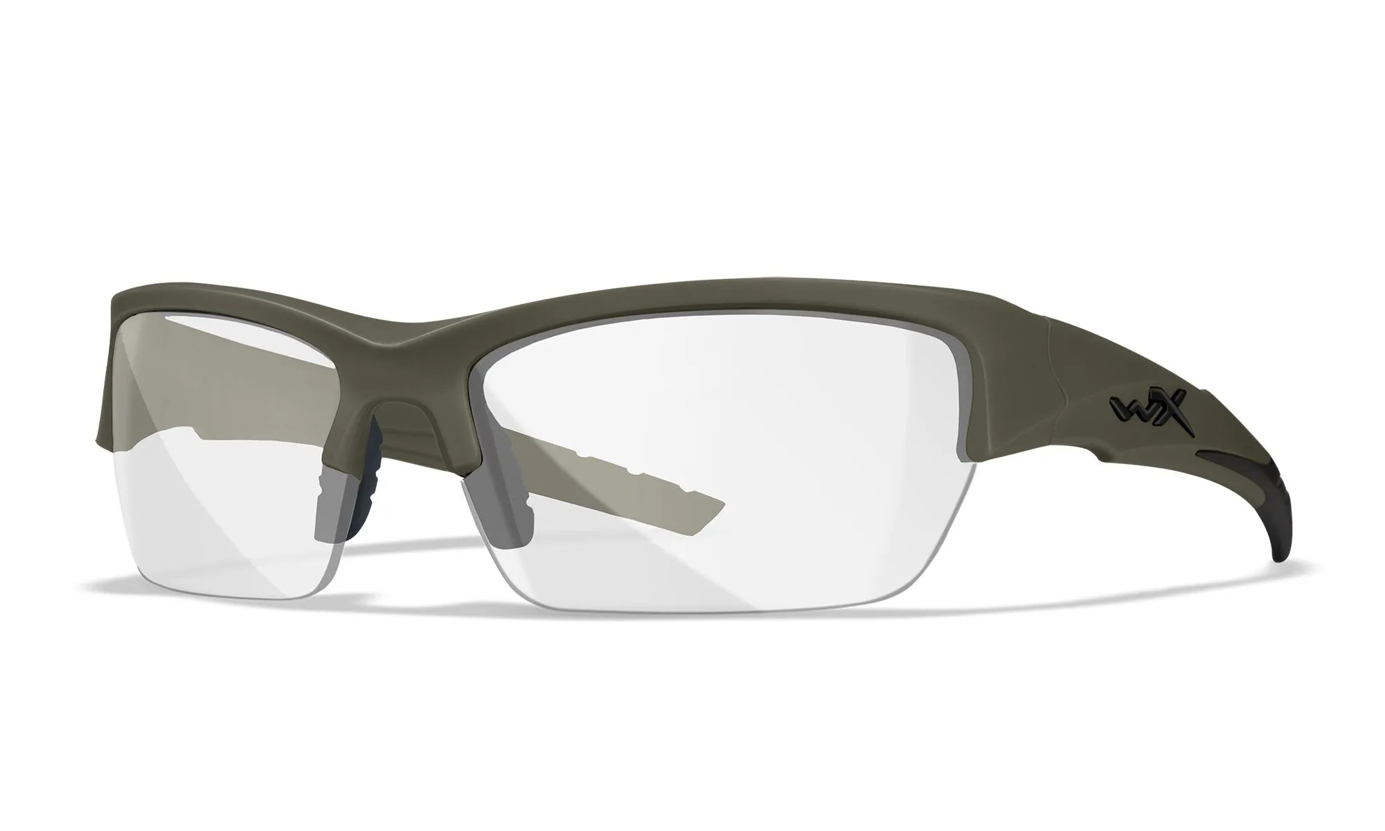 Wiley X WX Valor – taktische Schutzbrille mit austauschbaren grauen, klaren und hellorangen Gläsern. Matt armeegrünes Gestell, 100 % UV-Schutz, kratzfest & stoßsicher – ideal für Schießsport, Jagd & Einsatz.
