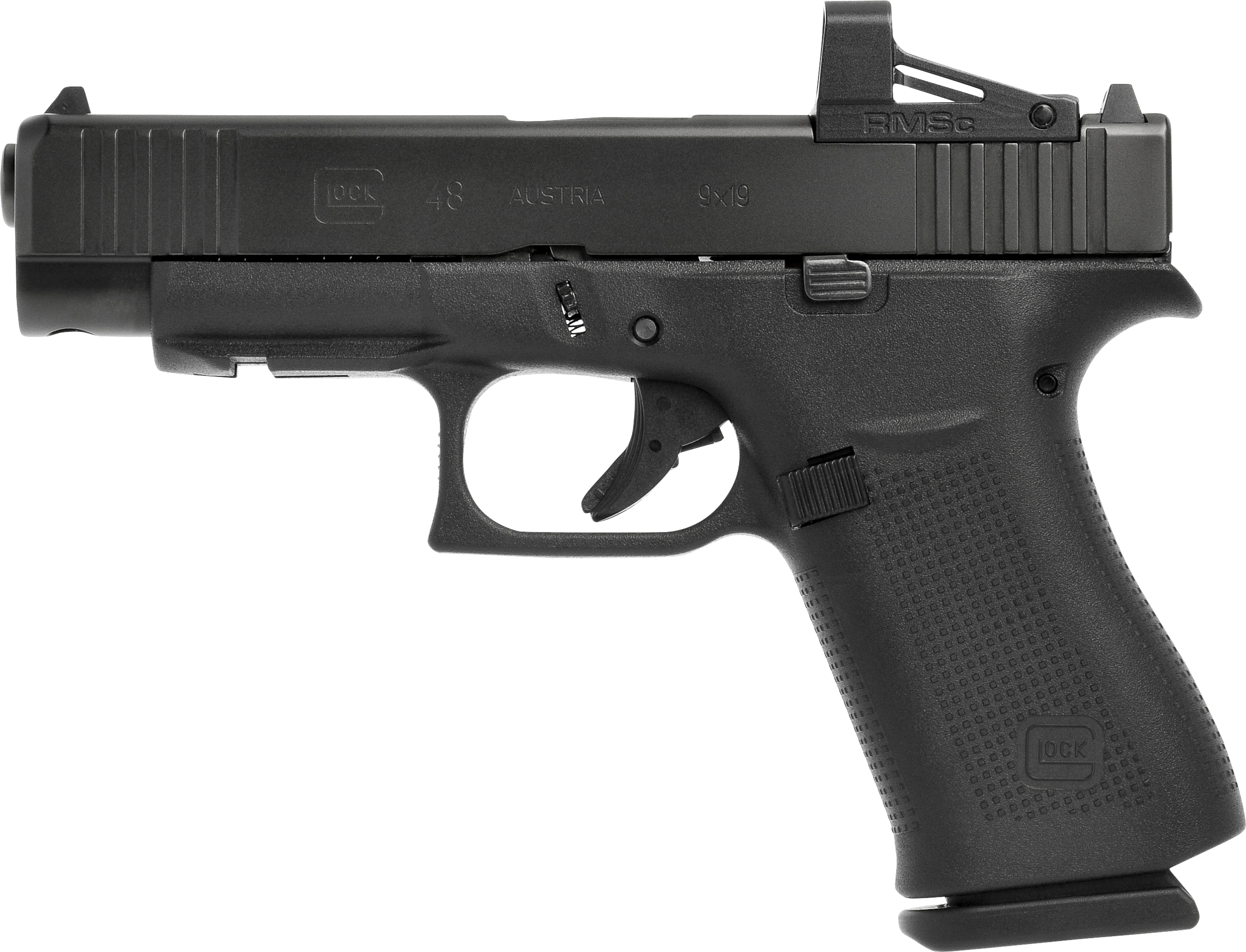 Die GLOCK Combo G48 MOS Shield RMSc im Kaliber 9 mm Luger verbindet die schlanke G48 MOS mit einem ab Werk montierten Shield RMSc Mini-Leuchtpunktvisier. 10-Schuss-Slim-Magazin, GLOCK Marksman Barrel und die kompakte Slimline-Bauweise machen dieses Set zu einer modernen Komplettlösung für Training, sportliches Schießen und professionelle Anwendungen.