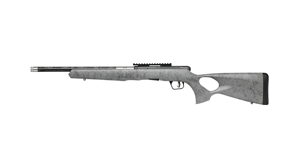 Das Savage B Series Timberlite Thumbhole im Kaliber .17 HMR kombiniert technische Präzision mit edlem Design. Der graue Daumenlochschaft aus laminiertem Holz bietet eine beidseitige Ergonomie und sorgt für hervorragende Kontrolle und Stabilität beim Schuss. Perfekt für Jäger und Sportschützen, die Wert auf Präzision und Ästhetik legen.