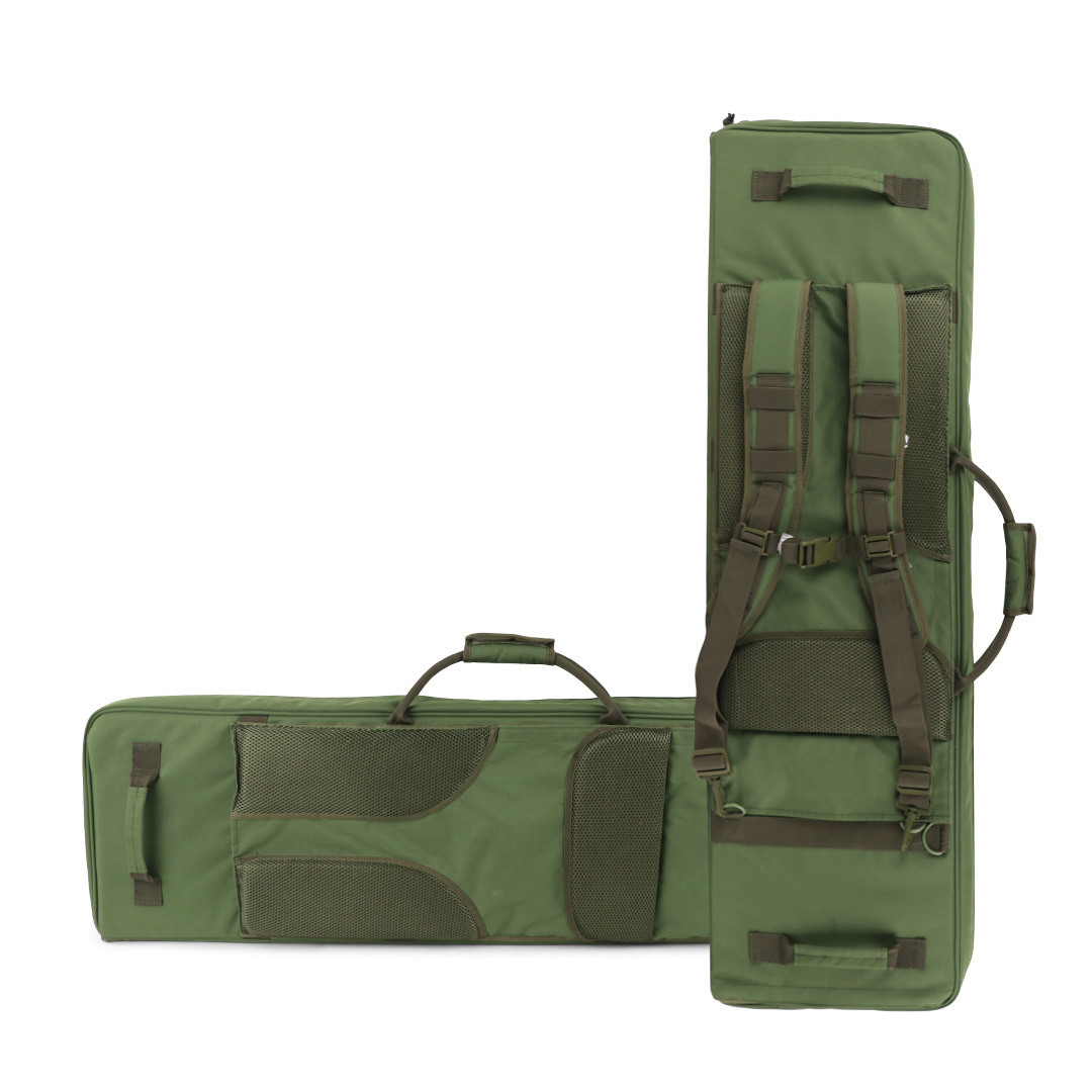 Modulare Tactical-Waffentasche 110 cm mit Laser-Cut MOLLE, gepolstertem Hauptfach, abschließbaren 2-Wege-Reißverschlüssen und flexiblem Tragesystem (Griff, Schulterriemen, verdeckbare Rucksackgurte). Innen: 110 × 31 × 10 cm, Gewicht: 3,6 kg.