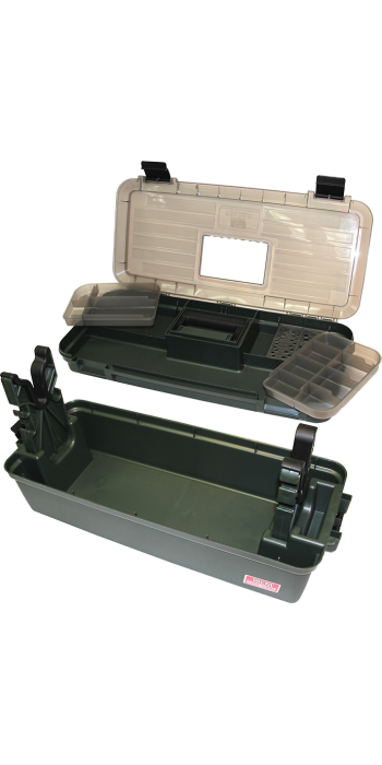 MTM ist immer bestrebt innovative Produkte zu entwickeln. Mit der RBMC Shooting Range Box ist ihnen wieder ein echtes Super-Talent gelungen! Die All-In-One Transport- und Reinigungsbox ist eine sehr hochwertige, große Transportbox aus extrem stabilem, lösemittelbeständigem Kunststoff mit Klappdeckel und Klappgriff in zweiteiligem Design in Kombination mit einem integrierten Waffen-Reinigungscenter.