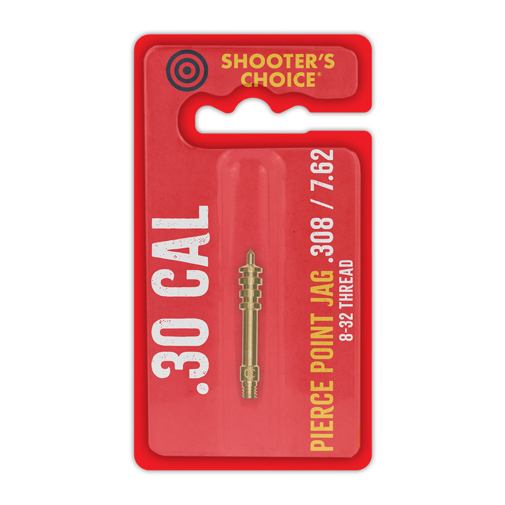 Der Shooter's Choice Pierce Point Jag aus massivem Messing ist kaliberspezifisch ausgelegt, um einen passenden Sitz zwischen Patch und Lauf zu erreichen (Herstellerangabe). Die spitze Konstruktion hält den Patch zentriert und soll ihn nach dem Austritt aus der Mündung leichter freigeben (Herstellerangabe).