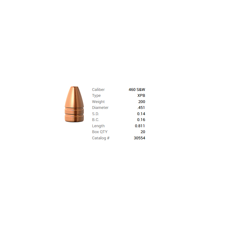 Barnes Geschoss .460 S&W/.451 200GR XPB Pistol FB 20 Stück