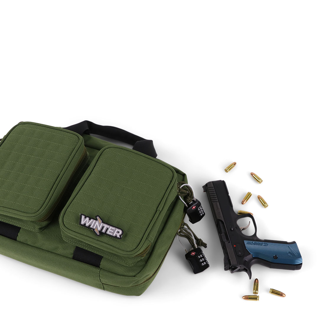 Winter Pistolentasche W8 für 2 Kurzwaffen – 8 Magazinhalter, 1000D, abschließbar (Forest)